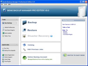 Bardzo prosty w użytkowaniu program do tworzenia kopii zapasowych. Program robi backup nieograniczonej ilości danych. Umożliwia zapis na wirtualnych i zdalnych dyskach. Spis treści: Genie Backup Manager Pro 8.0