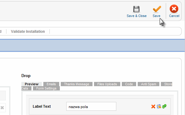 - Niestety nie istnieje możliwość podglądu Label Text bez zapisania, zamknięcia formularza i ponownego otworzenia. (Patrz edycja formularza)