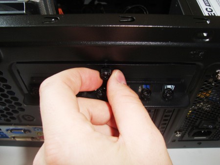 Kolejnym krokiem jest odkręcenie górnej maskownicy śledzi. Następnie, odkręcamy niepotrzebne śledzie i montujemy karty rozszerzeń.