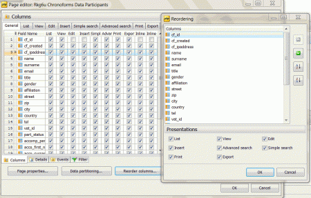 Szeregowanie kolumn. Wciśnij przycisk Reorder columns.. i przenieś rekordy.