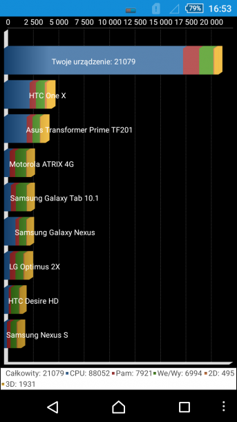 Niestety telefon ma regularną tendencję do grzania się pod obciążeniem. Winny temu jest zastosowany procesor. Jeśli chodzi o wydajność, to tutaj nie możemy się zbytnio do niej przyczepić. Nieco ponad 30.000 pkt w Antutu to norma dla tego procesora. Całość chodzi płynnie, nakładka nie tnie, nie szarpie – nie zaobserwowaliśmy też gubienia klatek między animacjami. Układ graficzny Adreno 405 pozwala na komfortowe granie w wysokich detalach w każdy tytuł dostępny w sklepie Google Play.