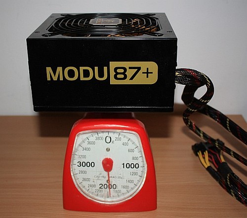 Zasilacz Enermax Modu 87+ to bardzo solidna konstrukcja, którą cechuje spore napakowanie dodatkowej elektroniki i potężnych radiatorów, które mają efektywnie odprowadzać ciepła ze wzmacniacza mocy. Zasilacz waży prawie dwa kilogramy, czyli ¼ więcej od używanego do tej pory w redakcji Zalmana 460 Watt. Pierwsze wrażenia są obiecujące. Przejdźmy w takim razie do specyfikacji.