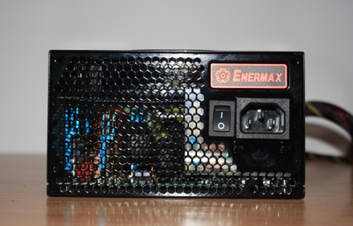 Widok z boku zasilacza. Dziurkowana obudowa pozwala na swobodny obieg powietrza.
